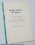 Martin Luther's 95 Theses. - Translated from a contemporaneous German rendering. With a reduced facsimile of the original copy of the edition of Luther's theses as arranged by himself in 1517, and now deposited in the Royal Library at Berlin. Wittenberg, Max Senf., 1912. 8°, Broschur, Sehr guter Zustand. 15 S. |
